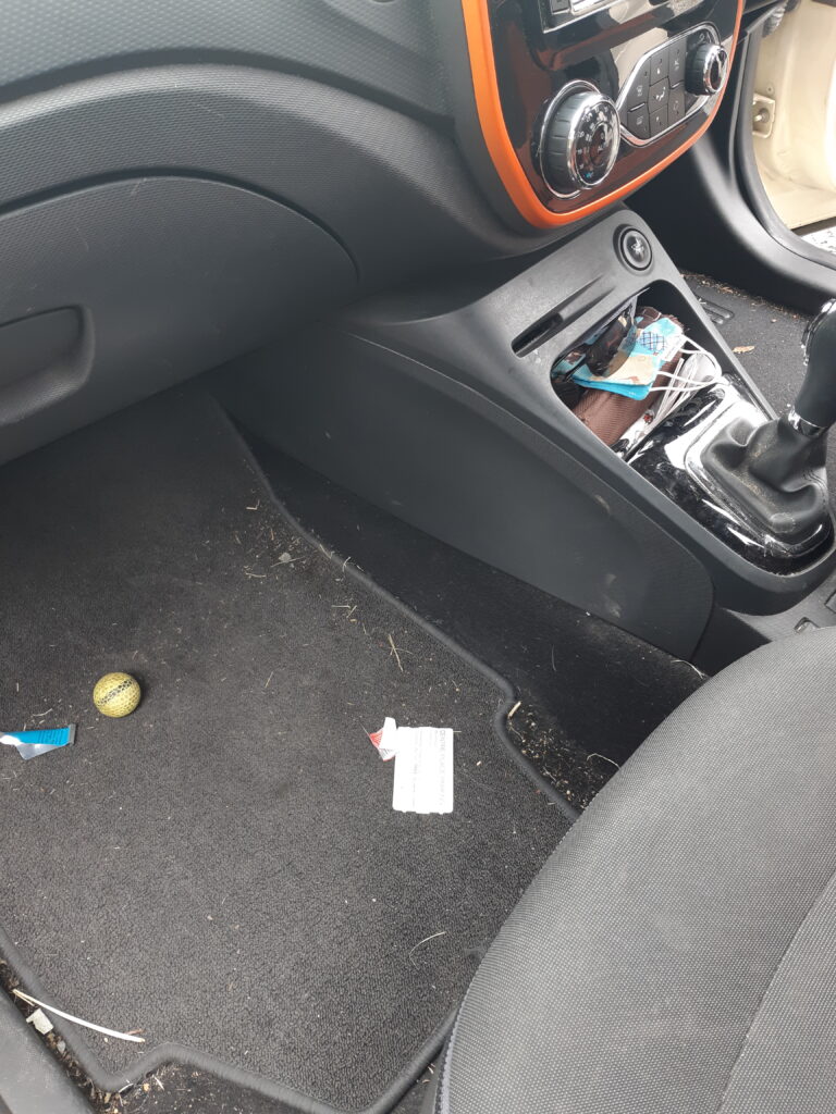 I had all sorts in there … golf balls, 2 umbrellas, Pilates socks, dog lead, numerous pens, masks to name a few, well you can see in the pic. Some items I will always keep in the car but some need to be culled! So next I cleaned the car, vacuumed carpets and seats then wiped down the dash and steering wheel etc. It is a good feeling to have a clean tidy car!