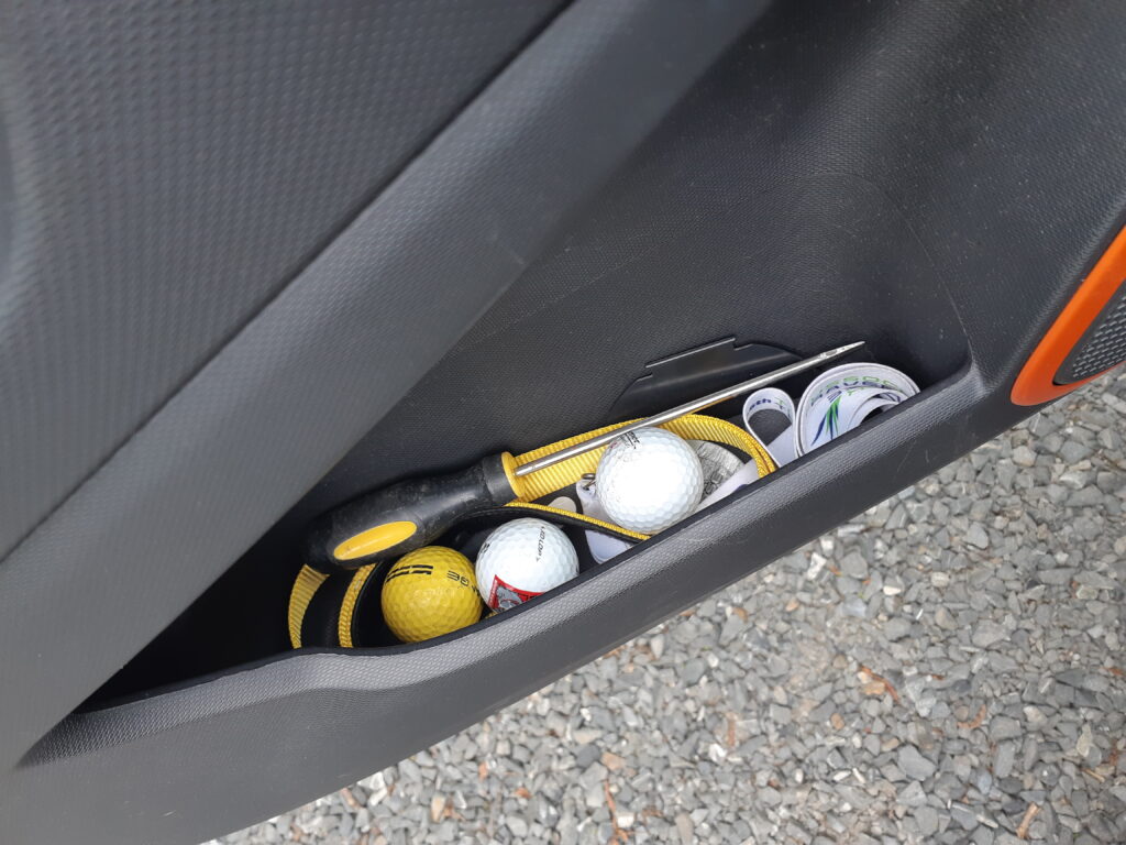 Then to place items necessary back into the car, I tested the pens put two working pens into glove compartment along with the car manual, charger, stereo remote, sunglasses, first aid kit and a lippy. (you just never know when you may need a lippy). I always have a dog lead in the car not only because I have dogs but you never know when you may come across a stray dog, so that went back into the side pocket along with one umbrella but the golf balls were delegated into the garage with my clubs. After all I am very unlikely to hit a golf ball without a golf club!!! My jumper leads went back into the car under the car seat.